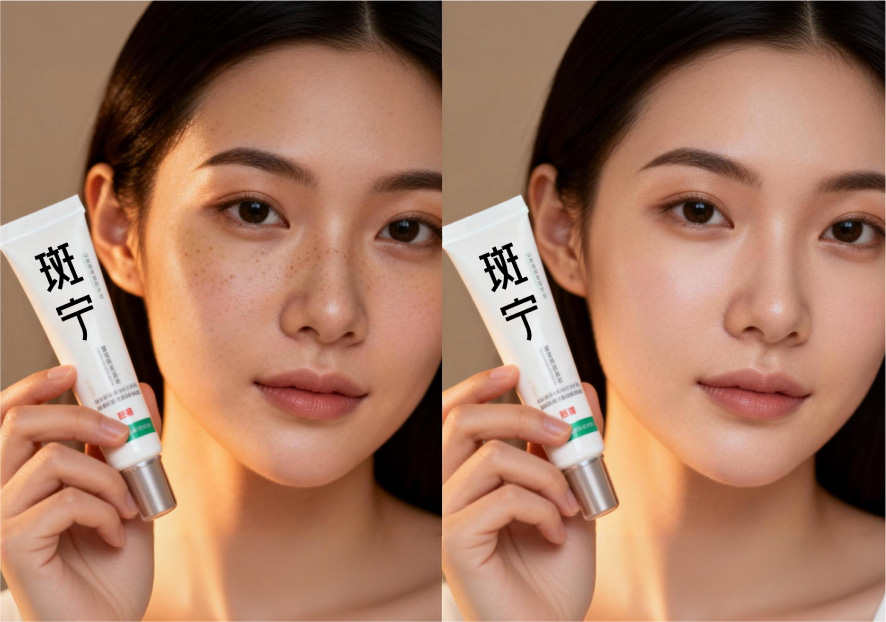 •信任交付: “宁”字有效地对冲了“祛斑必伤肤”的行业偏见,建立了一种温和与强效并存的新标准。